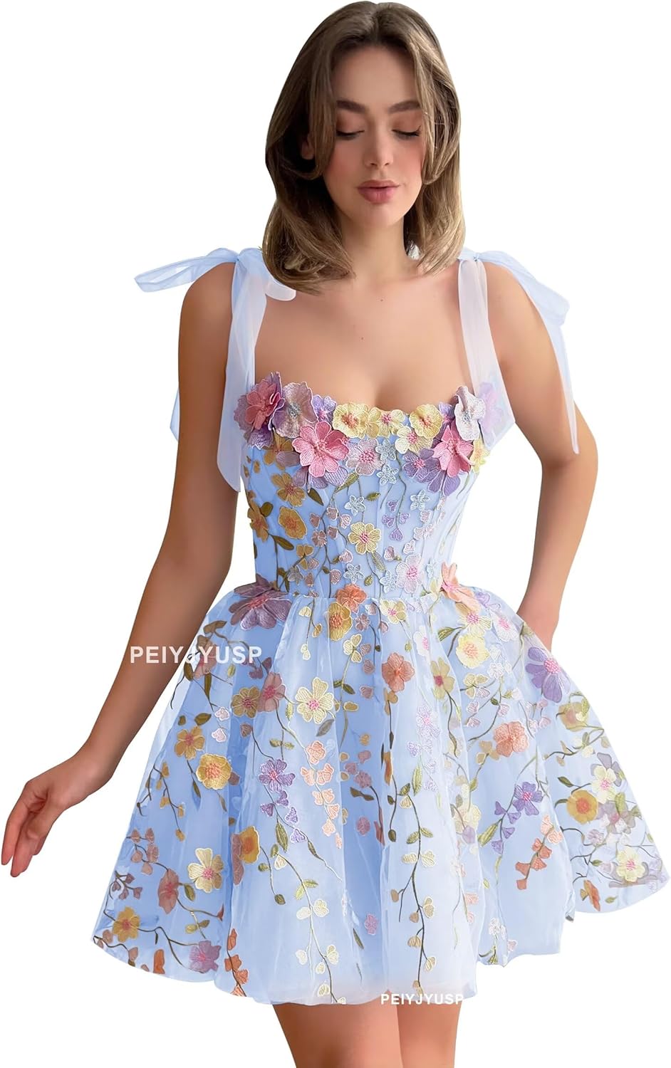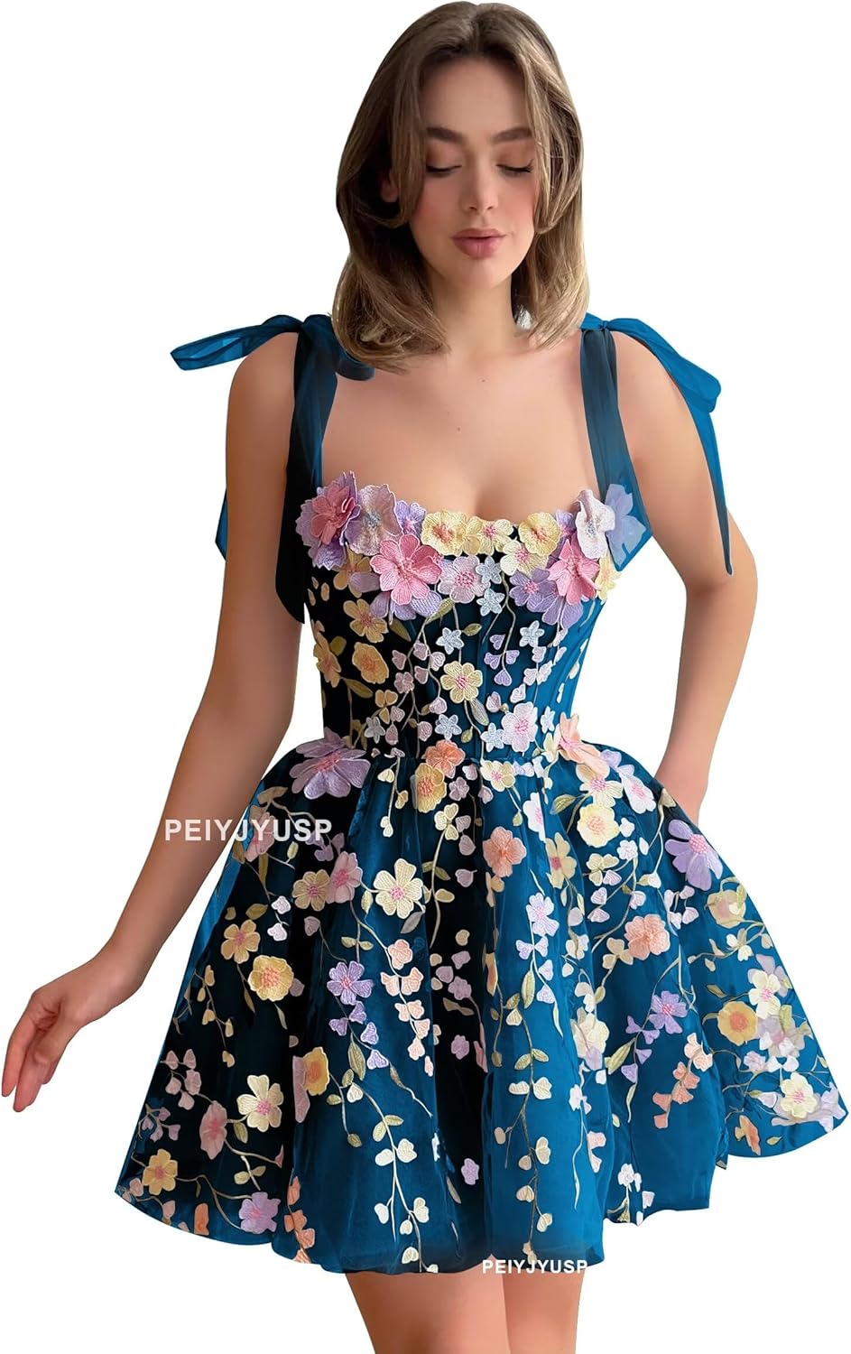 Welcome to PEIYJYUSP StoreShort Homecoming Dresses for Teens 3D Flower Tulle Short Prom Dress Spaghetti Strap A Line Cocktail Dress for Women Fabric: Tulle & 3D FlowerNeckline: Spaghetti StrapsSleeve: SleevelessBulit-in Bra: YesDress Length: Knee LengthSize Size US2: Bust 32.5", Waist 25.5", Hips 35.75", Size US4: Bust 33.5", Waist 26.5", Hips 36.75", Size US6: Bust 34.5", Waist 27.5", Hips 37.75", Size US8: Bust 35.5", Waist 28.5", Hips 38.75", Size US10: Bust 36.5", Waist 29.5", Hips 39.75", Size US12: Bust 38.0", Waist 31.0", Hips 41.25", Size US14: Bust 39.5", Waist 32.5", Hips 42.75", Size US16: Bust 41.0", Waist 34.0", Hips 44.25", Size US18W: Bust 45.0", Waist 38.5",Hips 47.5", Size US20W: Bust 47.0", Waist 40.75", Hips 49.5", Size US22W: Bust 49.0", Waist 43", Hips 51.5", Size US24W: Bust 51.0", Waist 45.25", Hips 53.5"If you can not sure your right size according to our size shart, you can send us your measurement details as list. 1.Full Bust _____ inch or ___ cm 2.Waist _____ inch or ___ cm 3.Hips _____ inch or ___ cm 4.Shoulder to Shoulder ____ inch or ___ cm 4.Height: _____inch or ___ cm 5.The height of your high heel shoes: _____inch or ___ cm